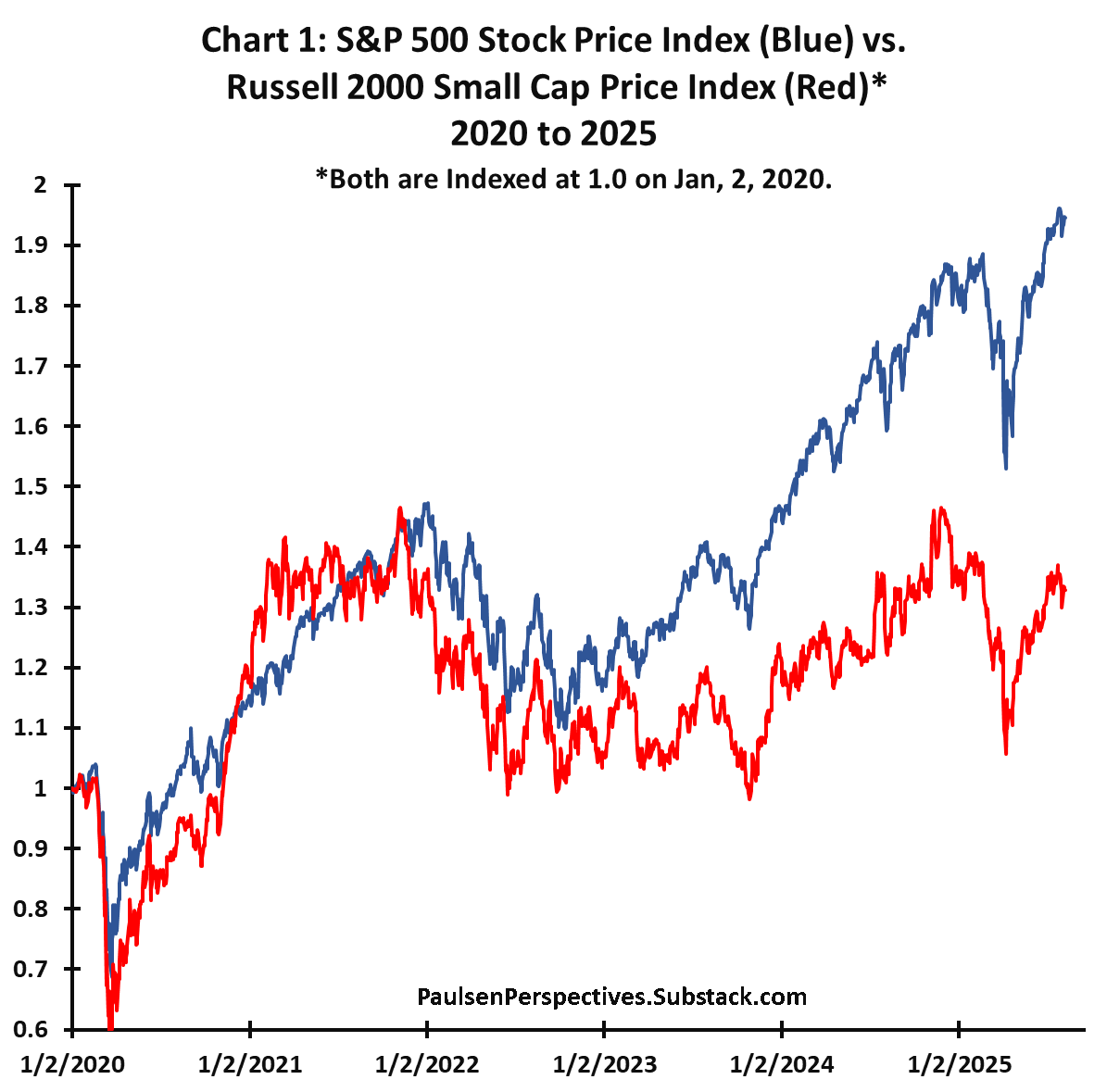 It’s been a tough bull market for small company stocks. As shown in chart 1, the current decade started out okay. After a short but sharp pandemic bear market in 2020, small cap stocks significantly outpaced the tech-fueled S&P 500 index during the post-pandemic bull market ending in December 2021. That was the last time small cap stocks led over their larger cap brethren.