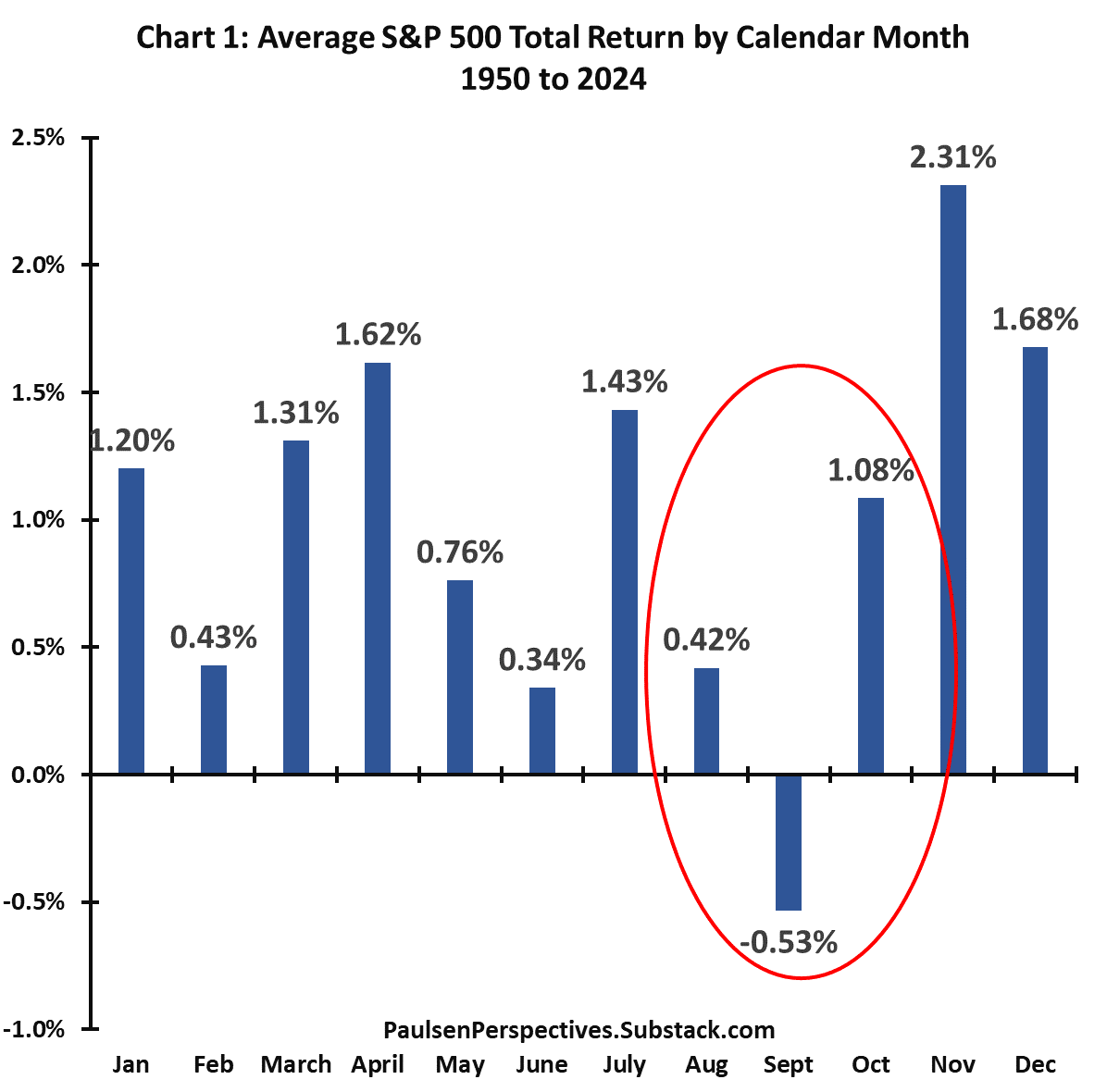 Charts 1 illustrates the seasonal challenge the coming three months have historically represented for investors. Since 1950, by a wide margin, September has been the worst month for stock returns with an average monthly return of -0.53% — the only month with a negative average monthly return. August is the third worst month delivering only a 0.42% return. While October looks favorable – it has the seventh best monthly average return at 1.08% -- this month boasts some of the worst stock market collapses in U.S. history.
